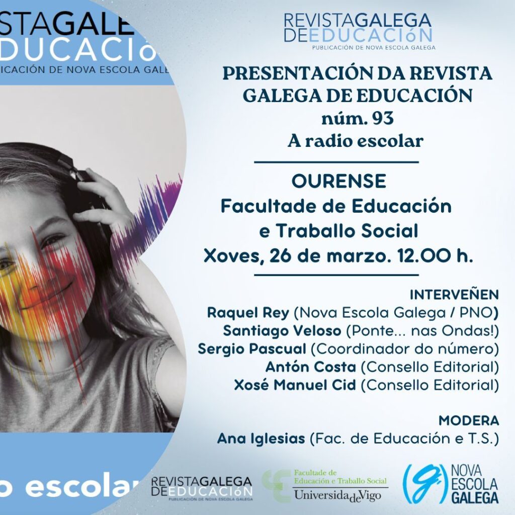 A Revista Galega de Educación, publicación de Nova Escola Galega, presenta o seu número 93 baixo o título A radio escolar, un monográfico dedicado ao papel da radio como ferramenta educativa, comunicativa e de participación nos centros escolares.